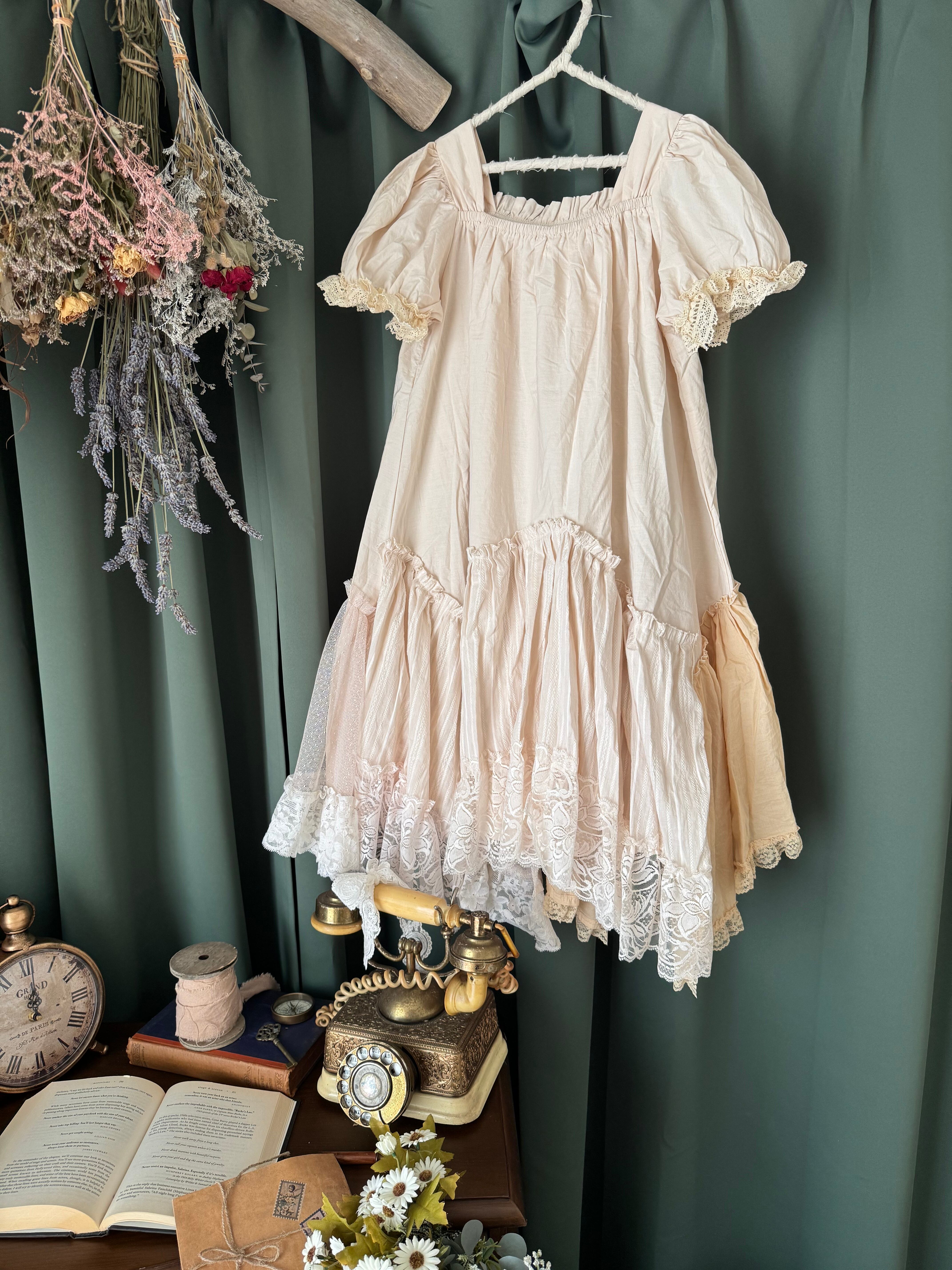 胸元のレースが特徴的な一点物のオリジナルリメイクワンピース✨