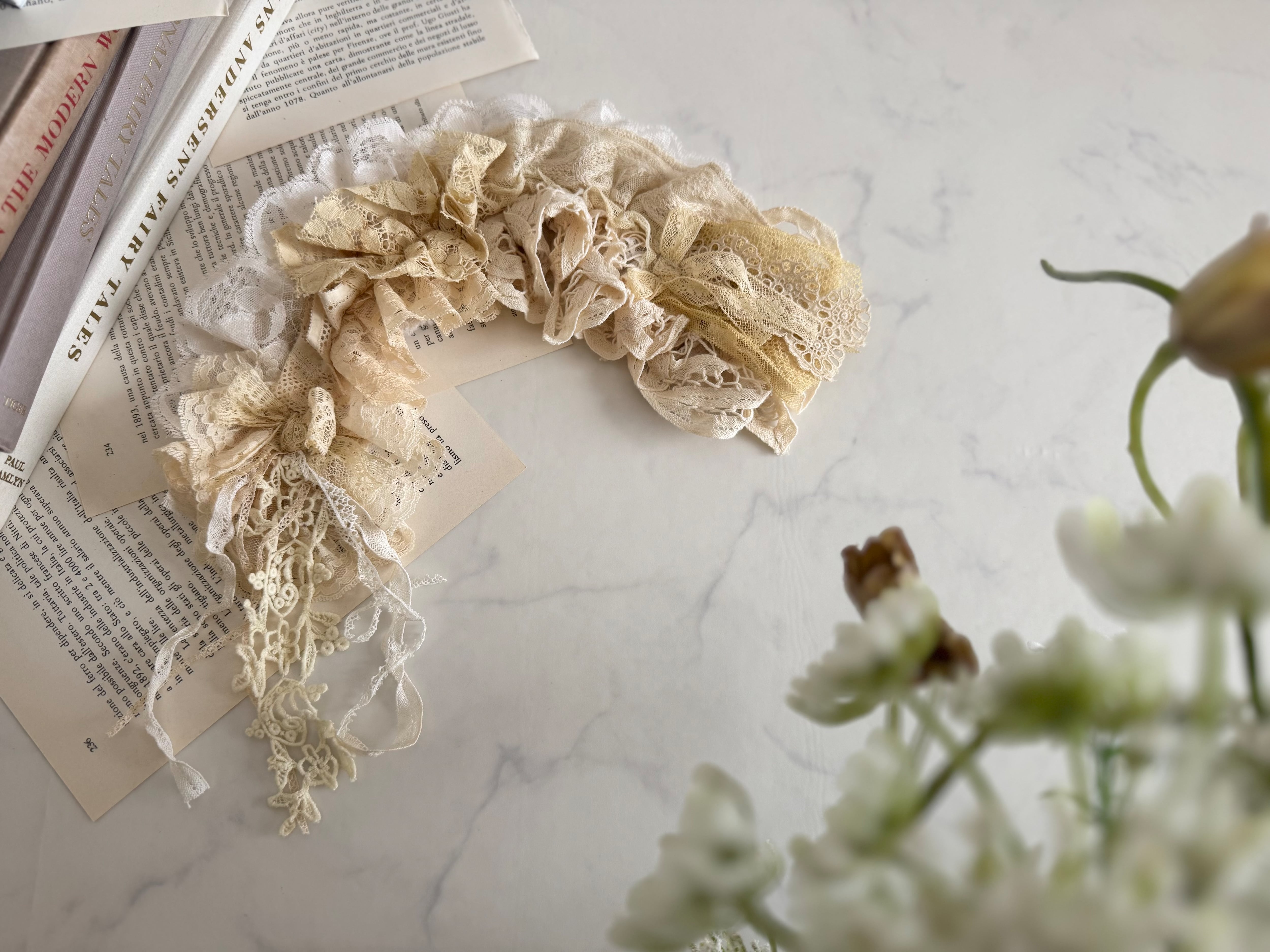 アンティークレースをmixしながら、一点物のデザインでお作りしてます♪