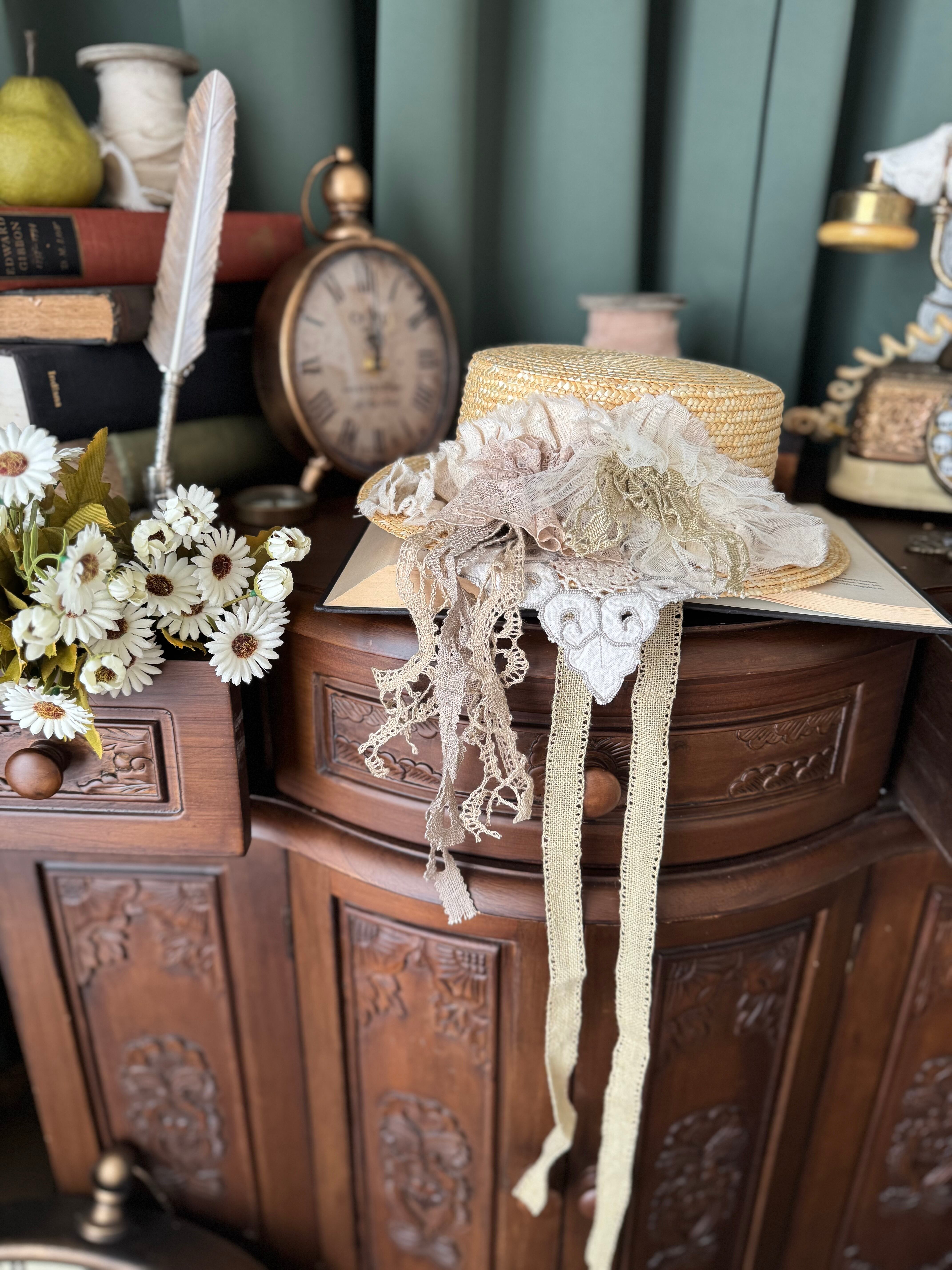 ヴィンテージレースを使用し、アンティークな風合いのアースカラーがお洒落なデザインです♪