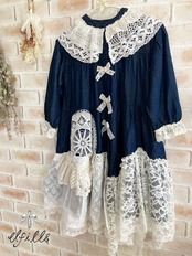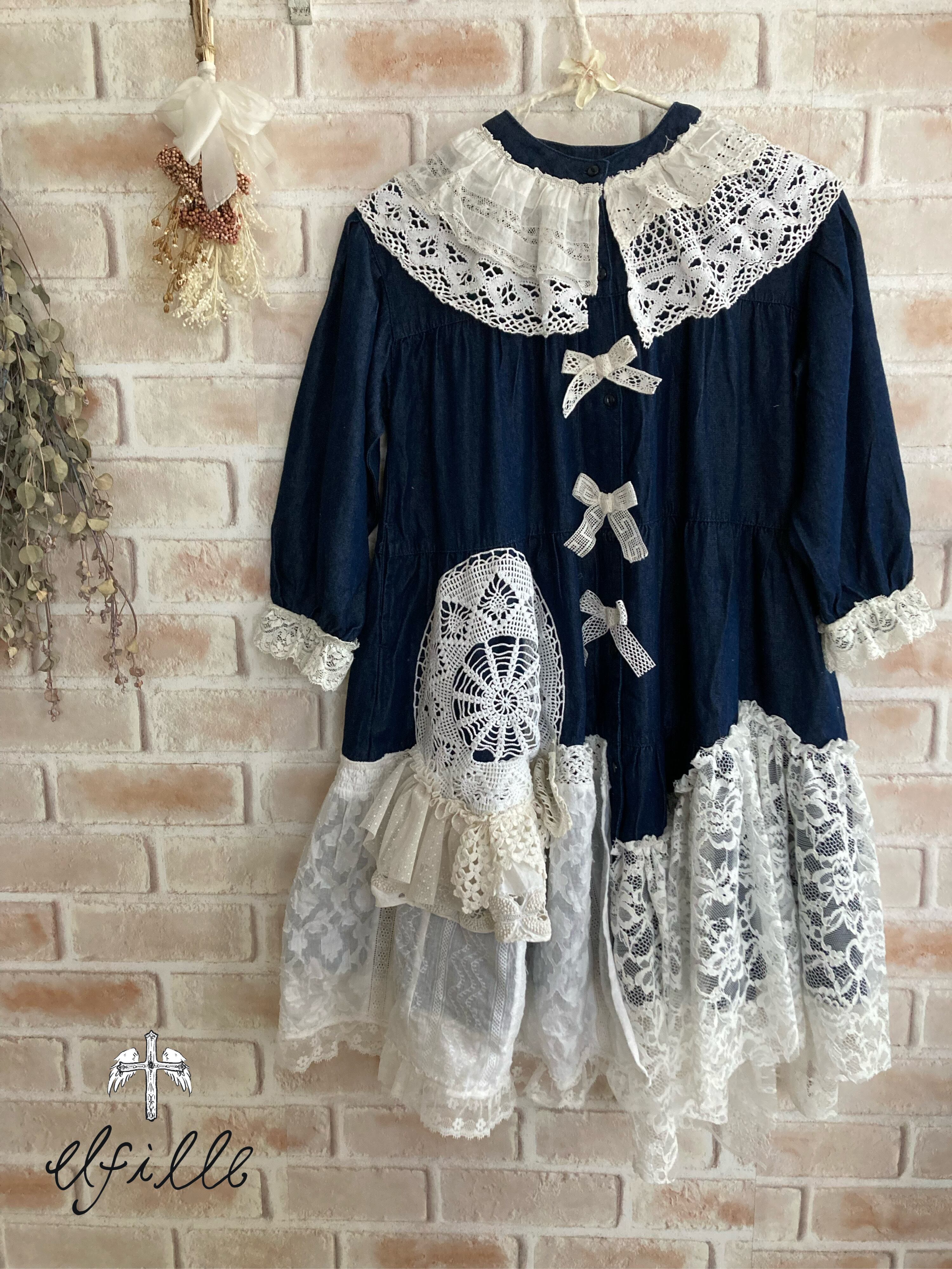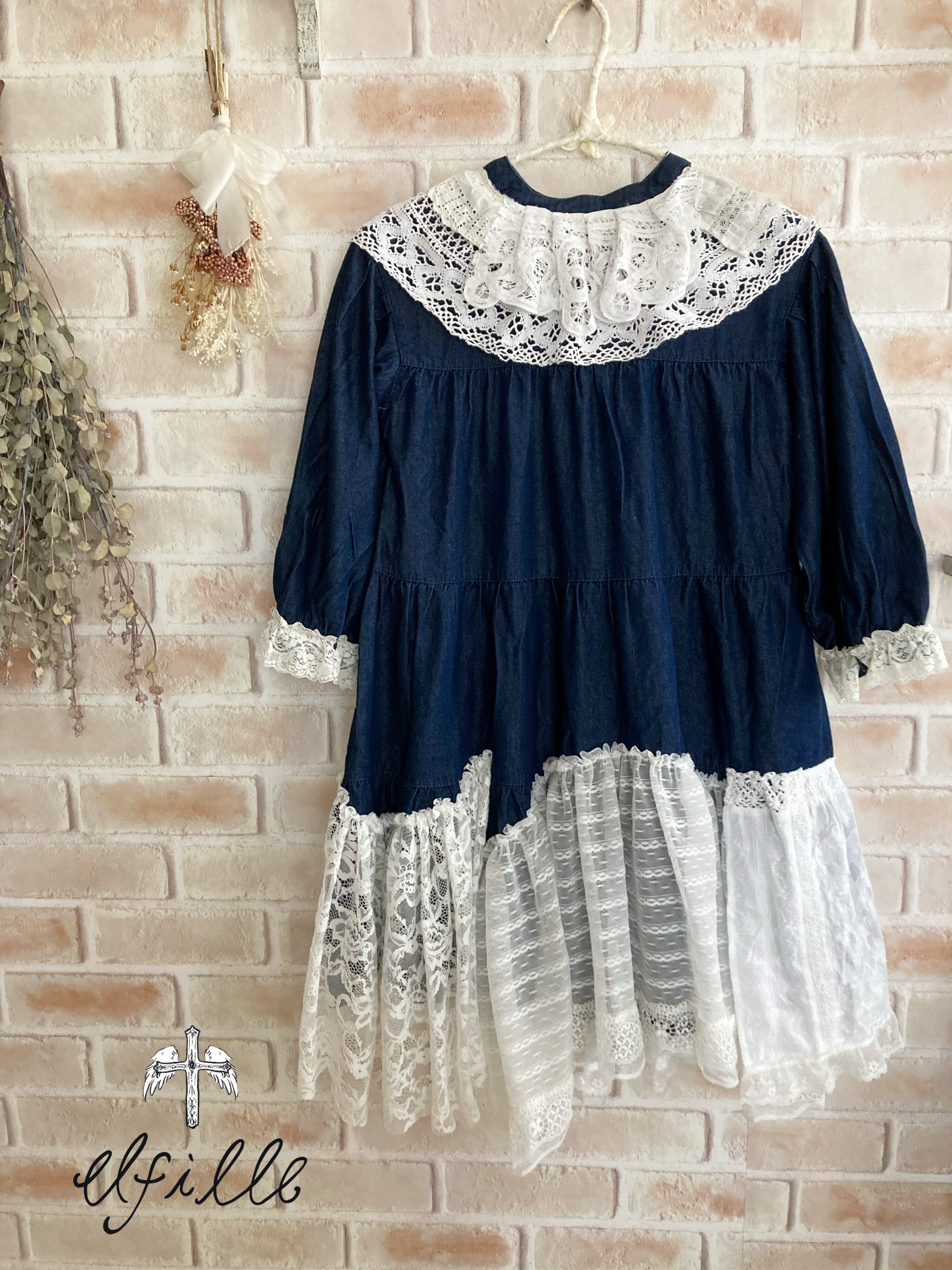 デニム×ホワイトレースの春に着たいガーリーワンピースです♪