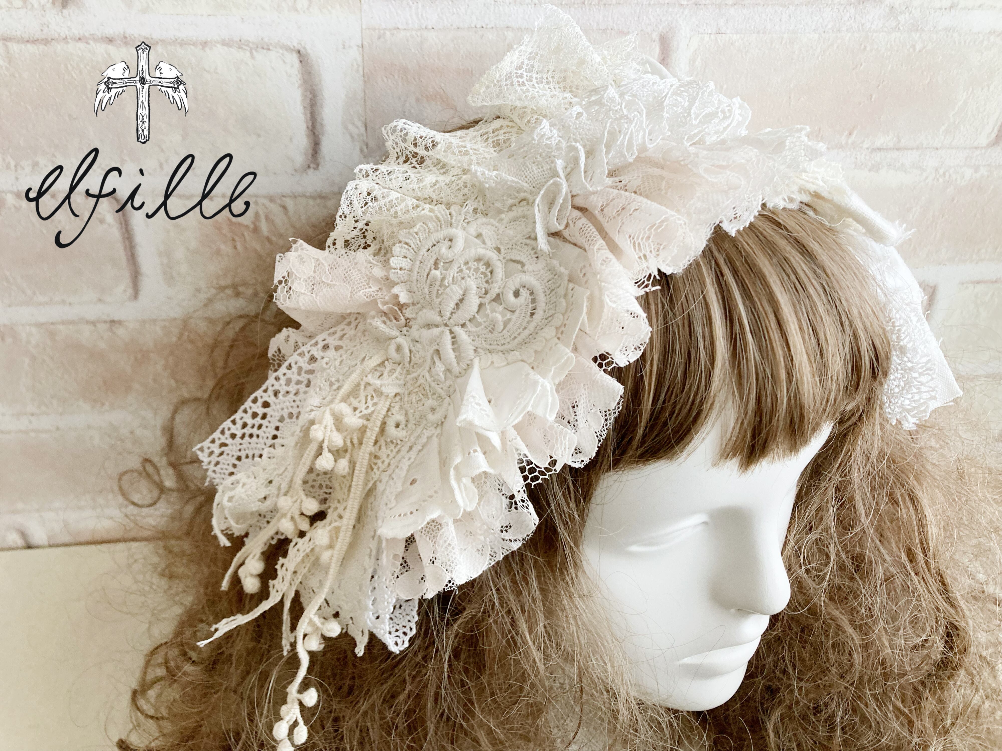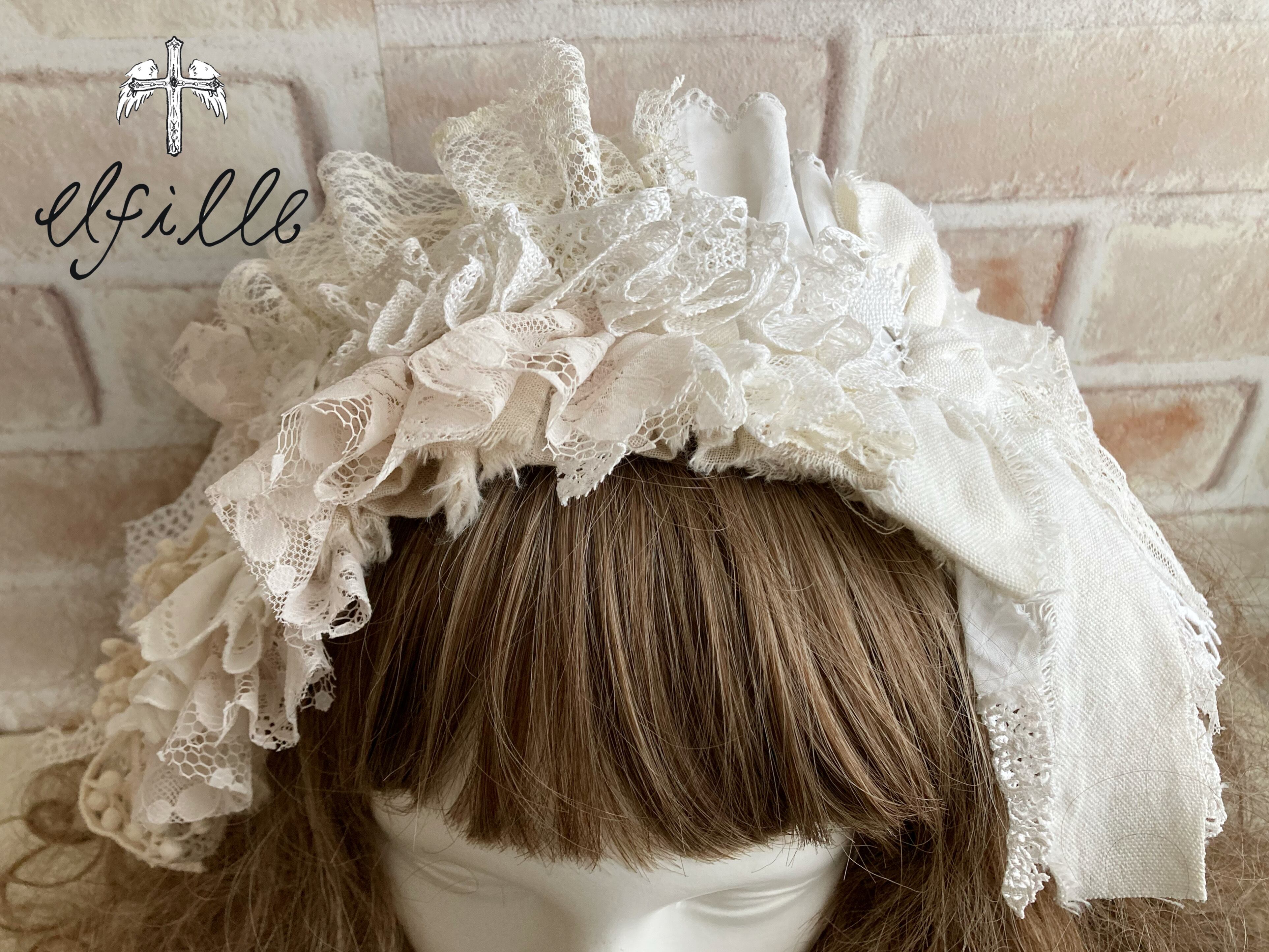 アンティークレースと現行レースをもりもり使ったヘッドドレスです♪