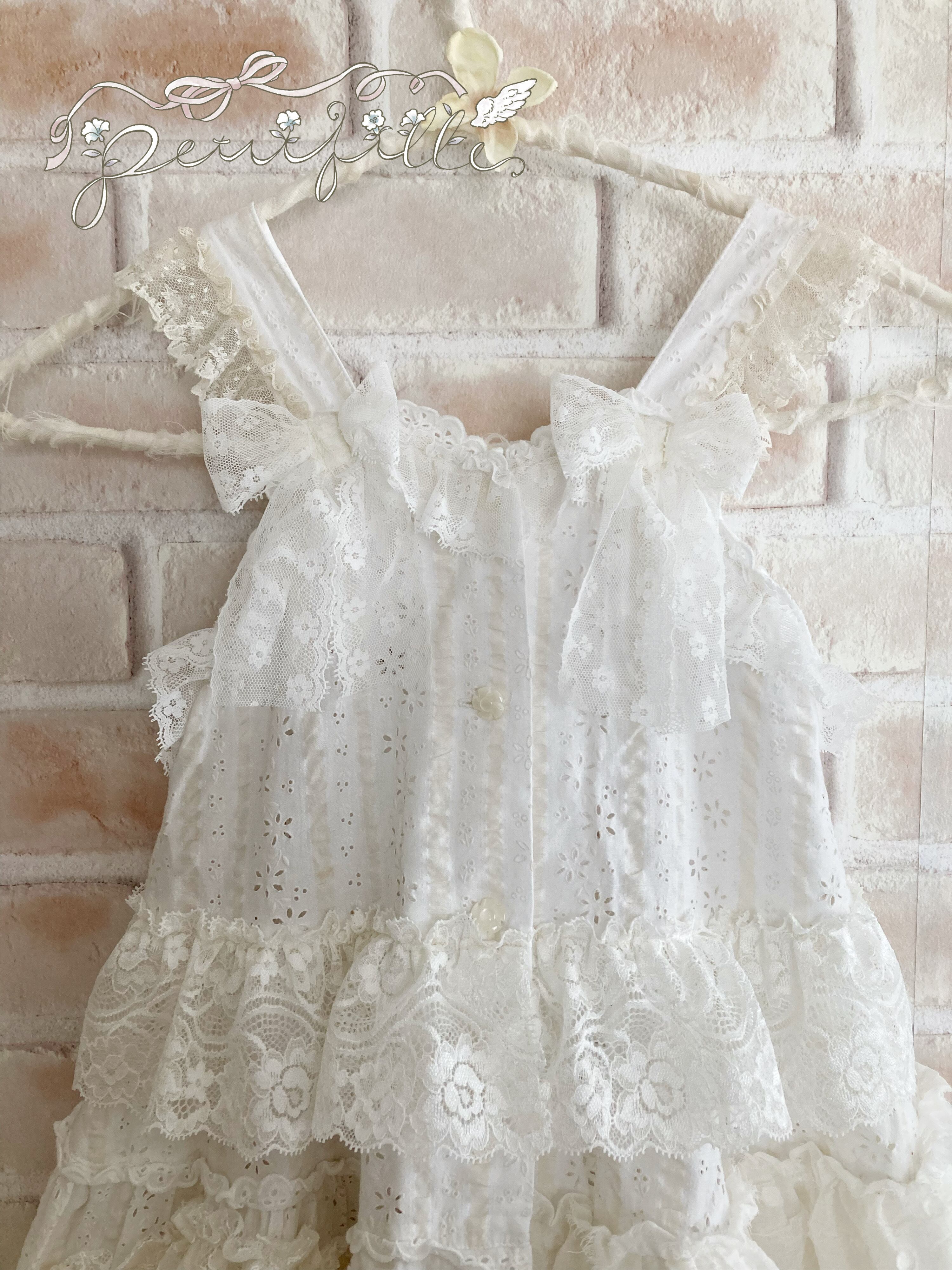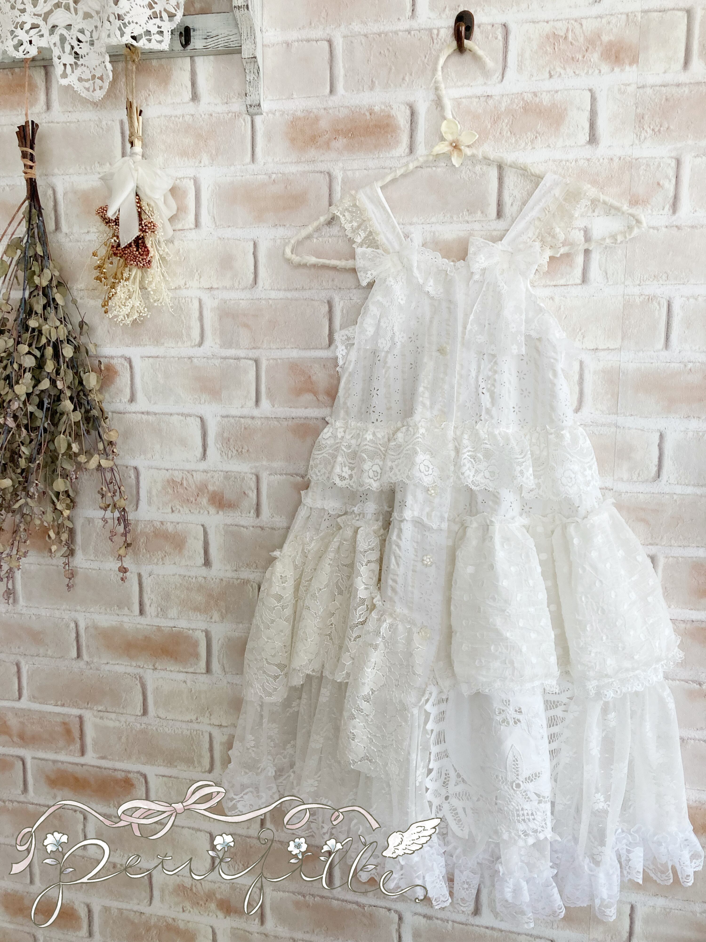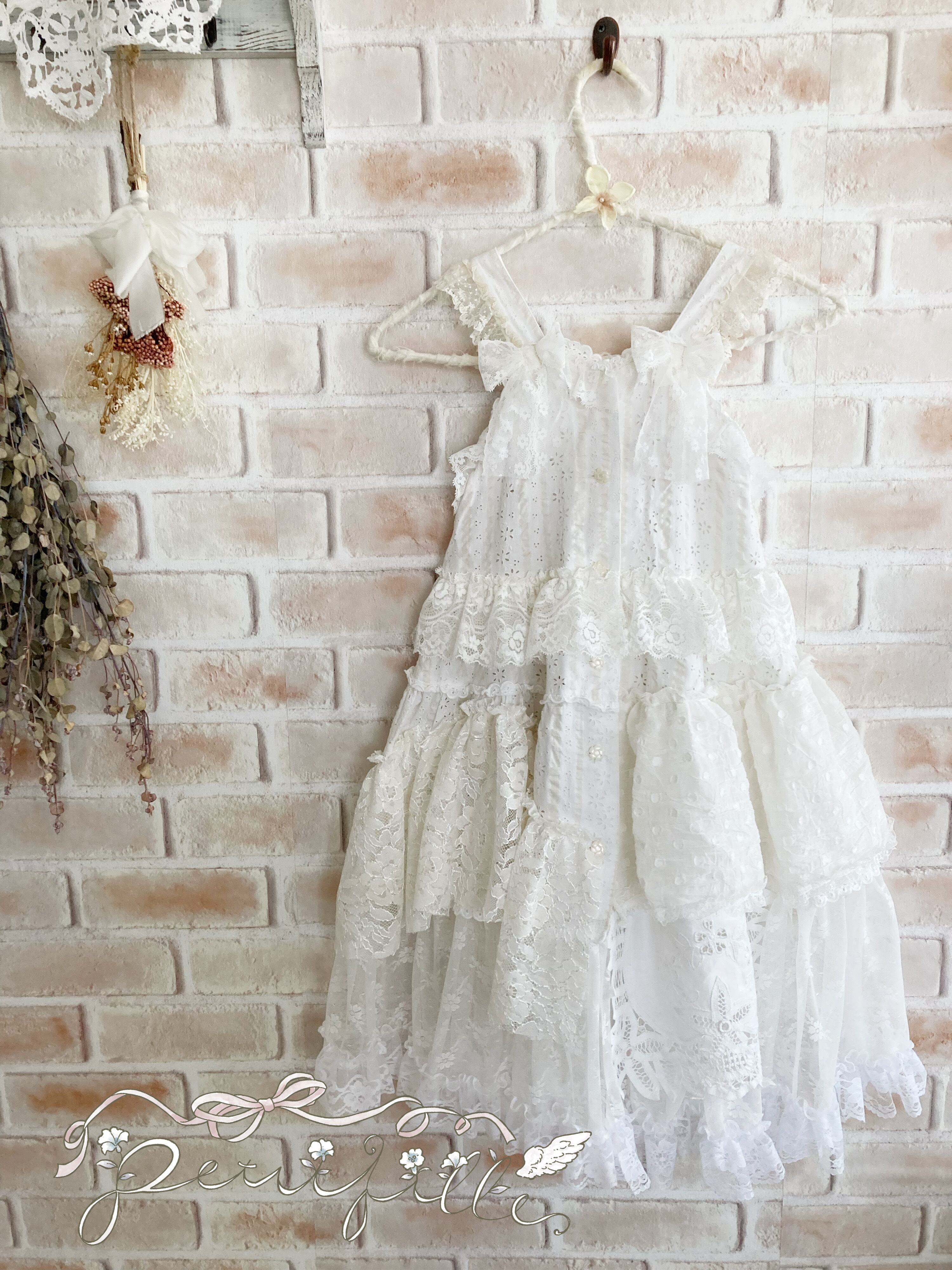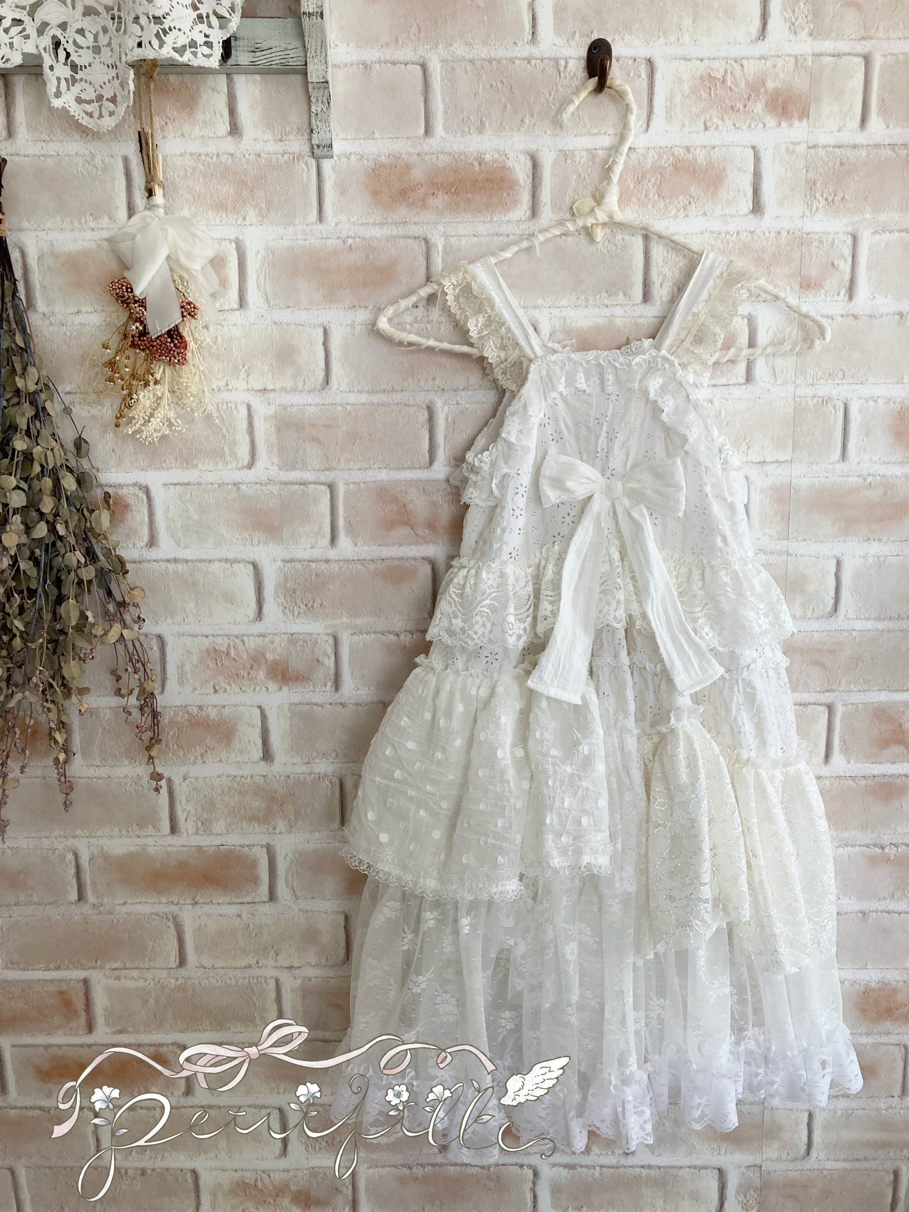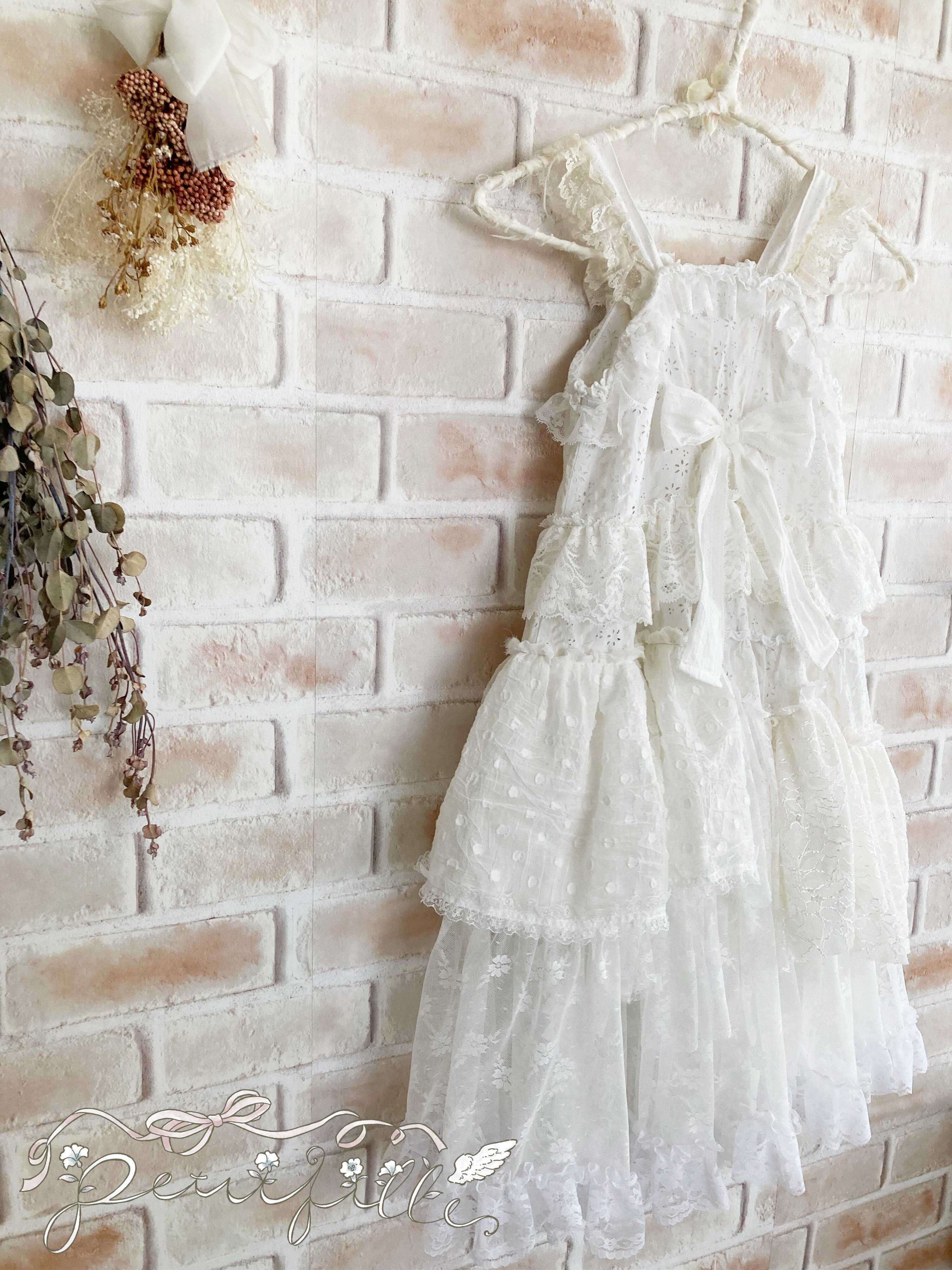 ホワイトカラーの夏らしいノースリーブワンピースです。両脇のリボンや、後ろにも大きなリボン付き♡