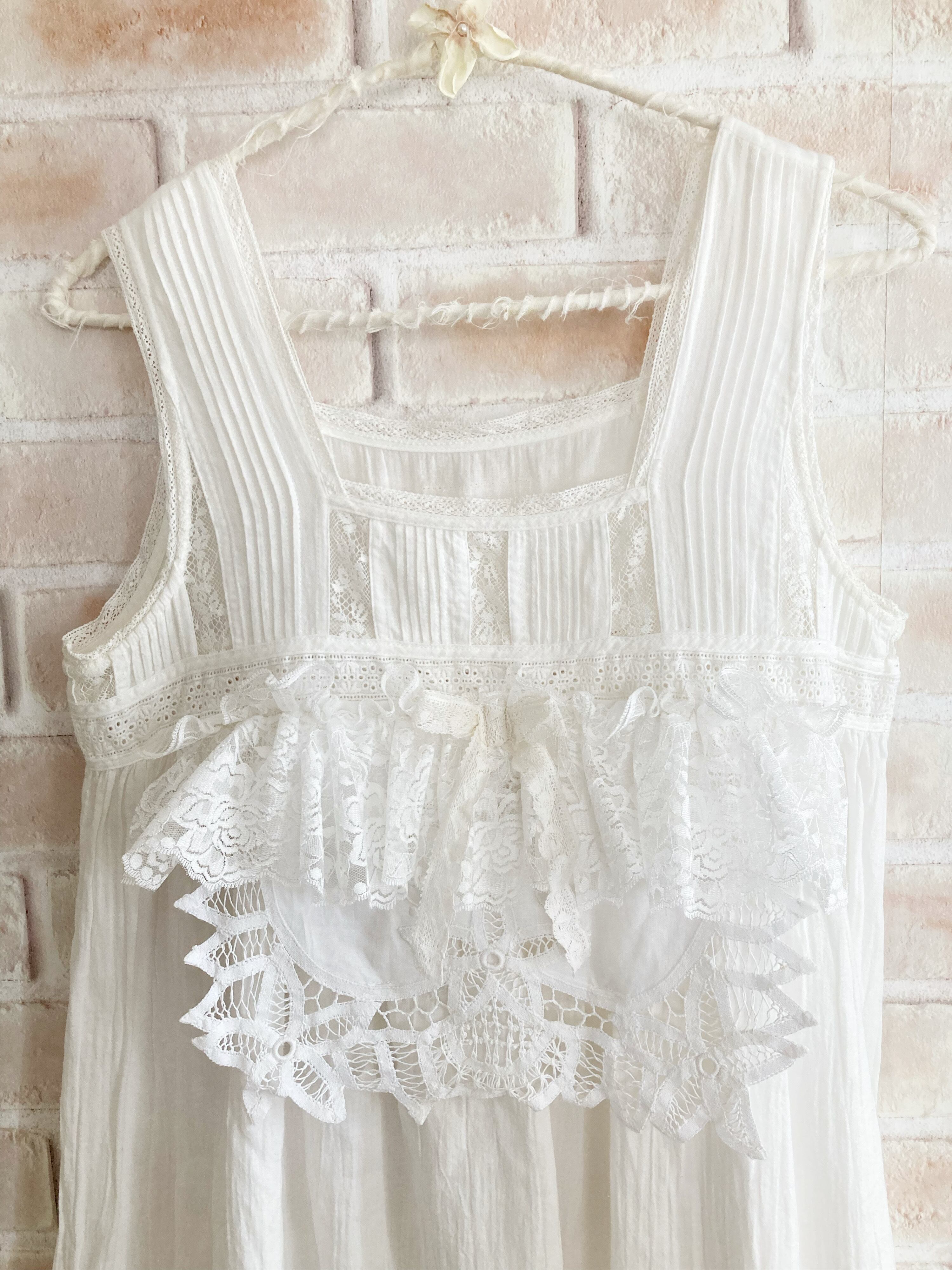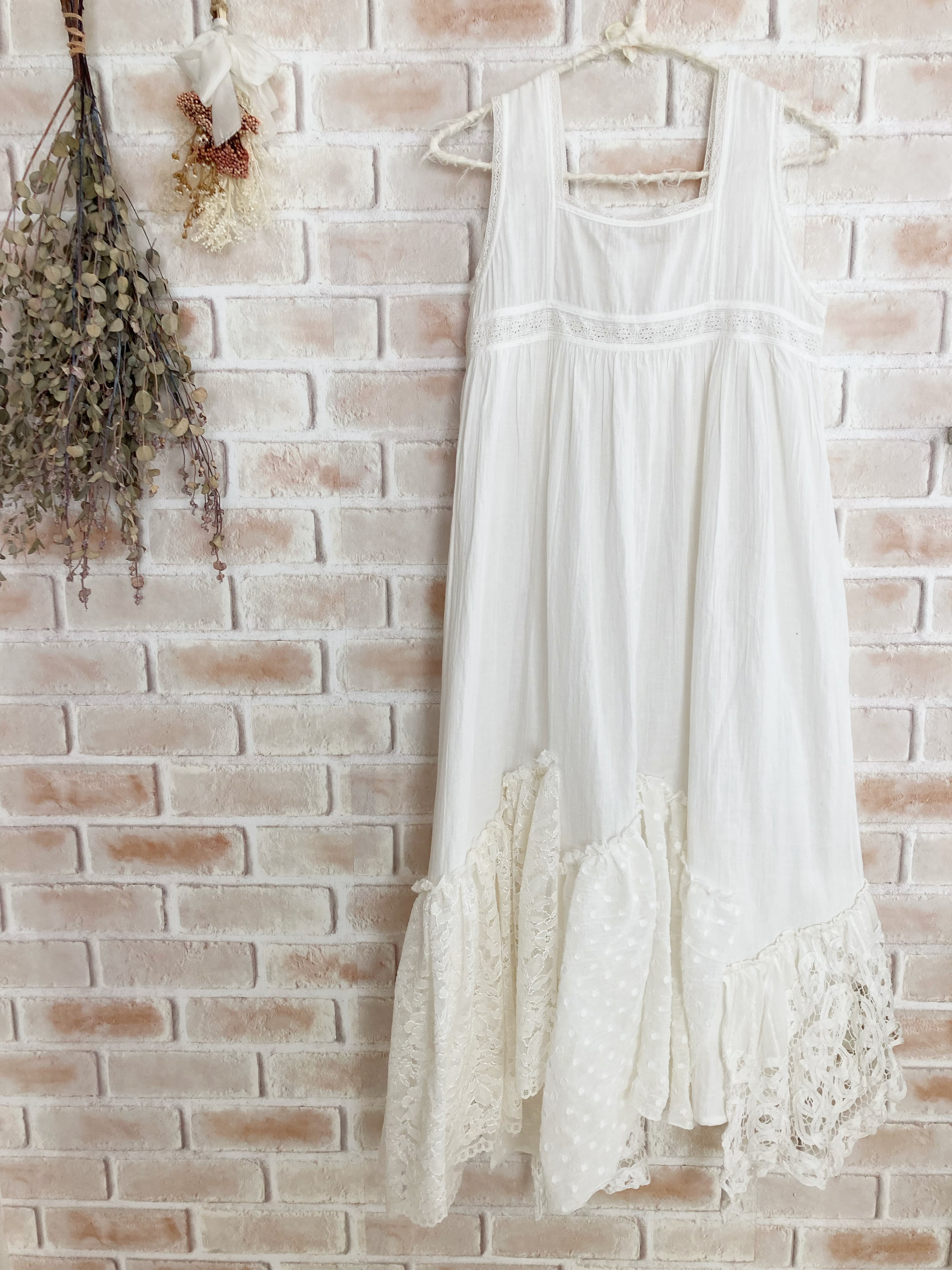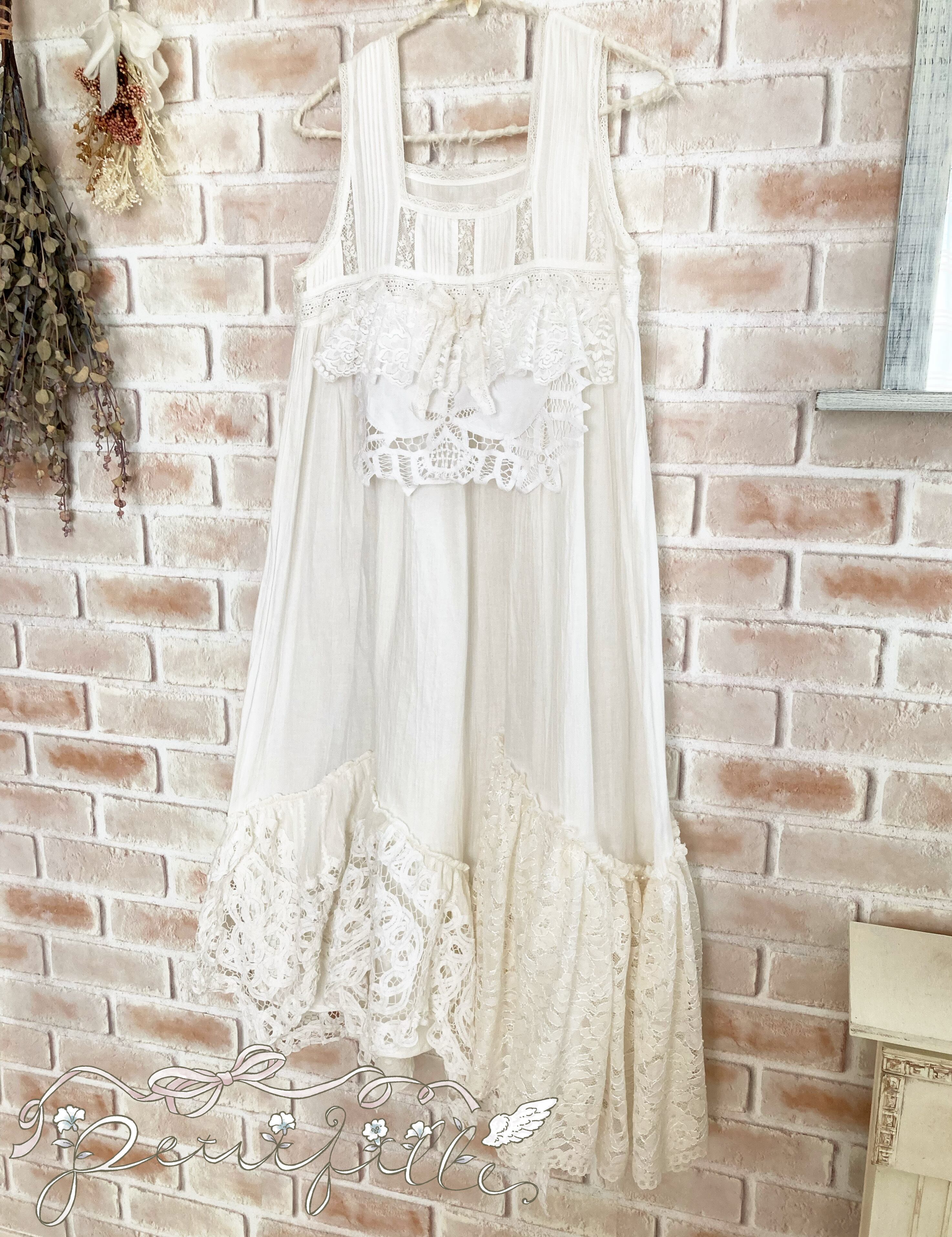 アンティークレースや現行レースで、古着をリメイクしてます。
