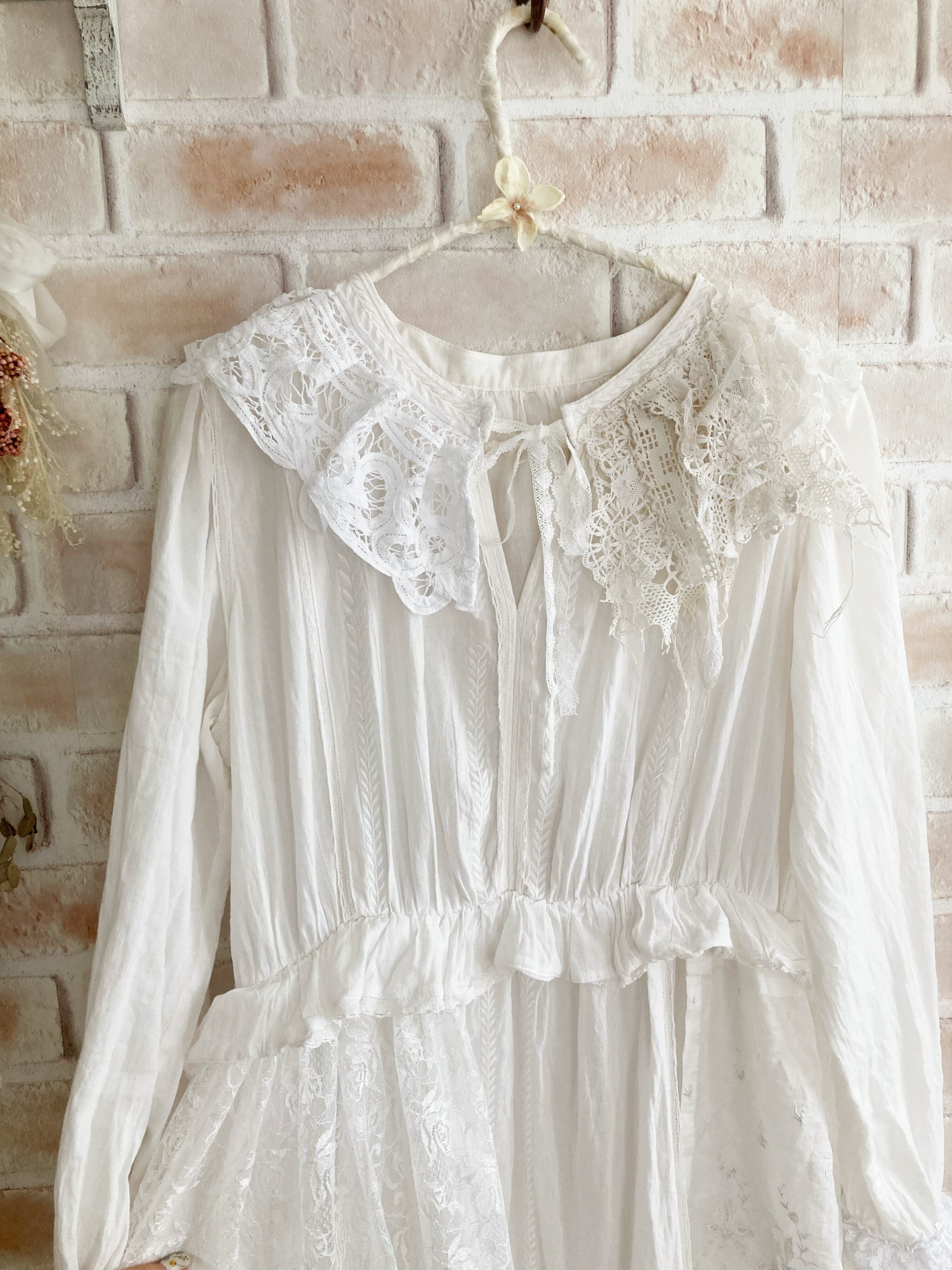 ホワイトの柔らかな薄手生地のワンピースをリメイクしました。