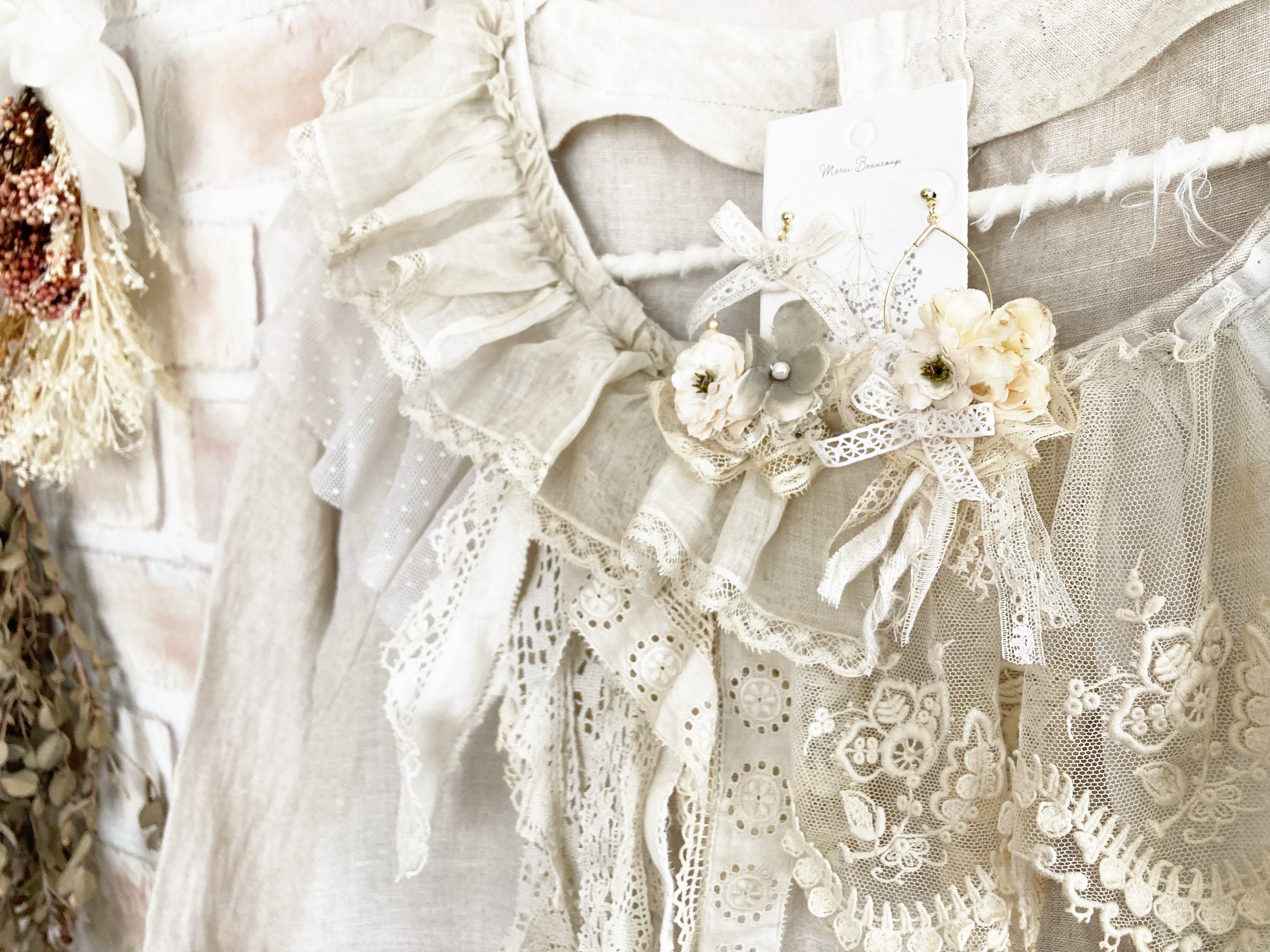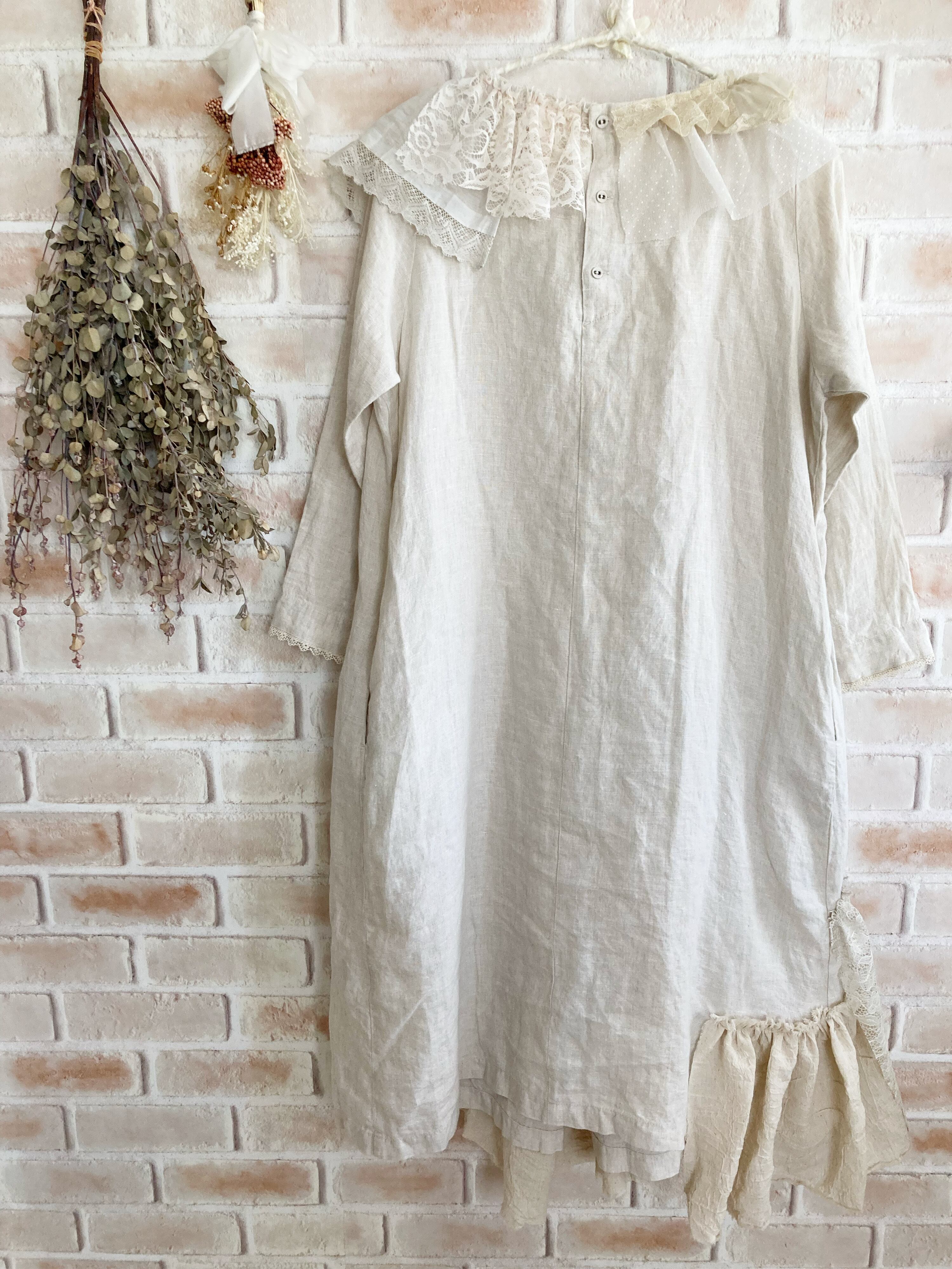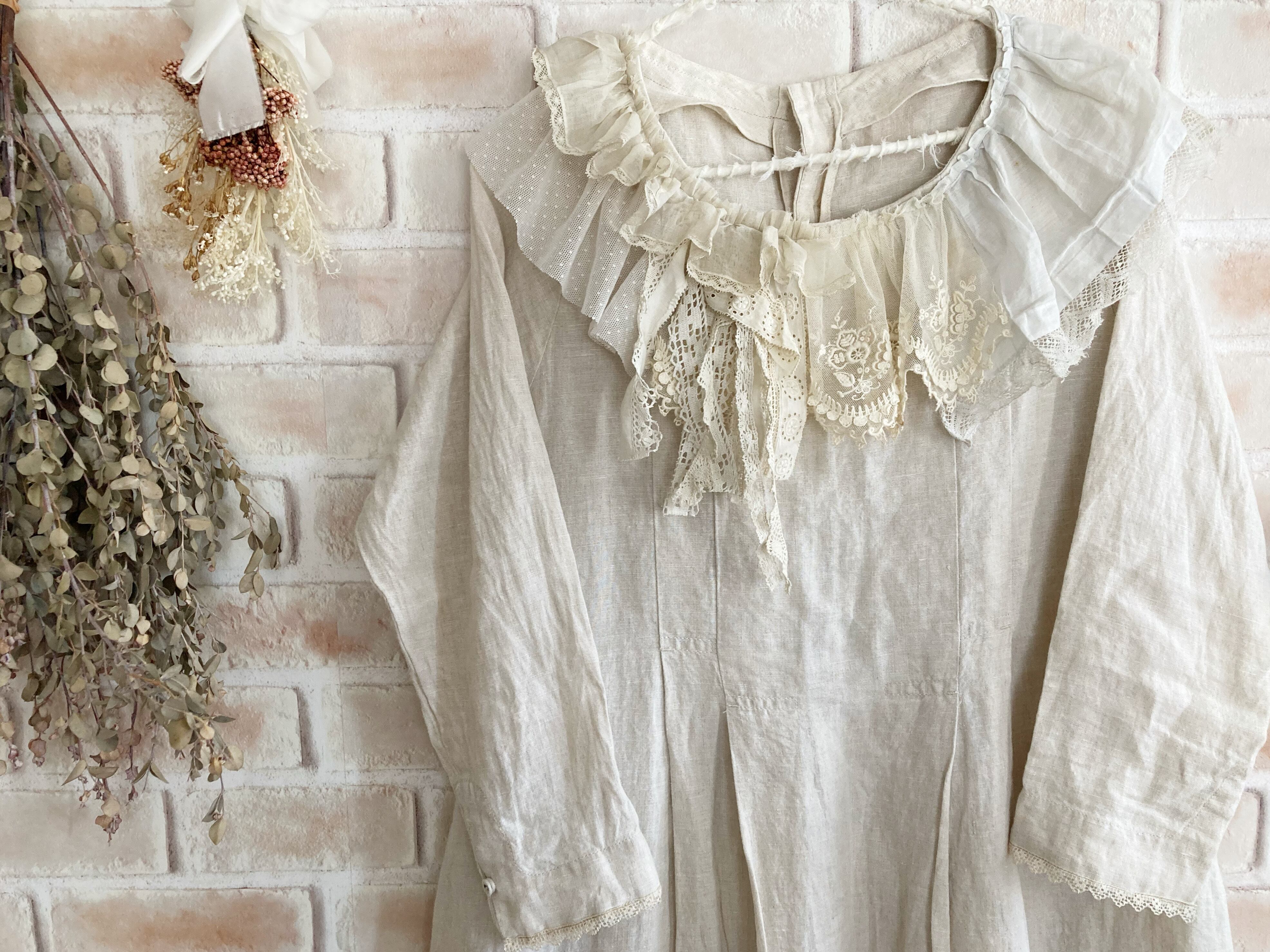 リネンワンピースに、アンティークレースをたくさん使ってでリメイクしました。