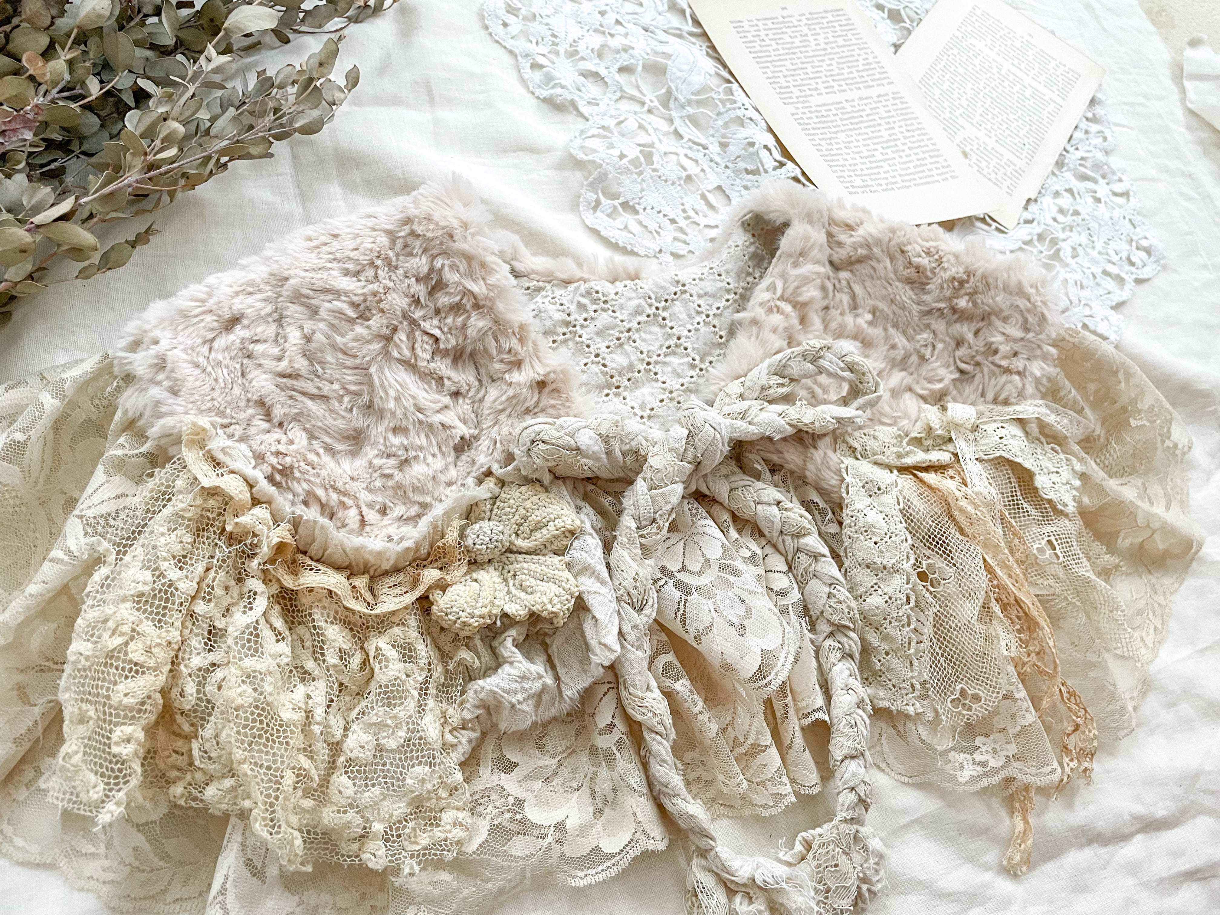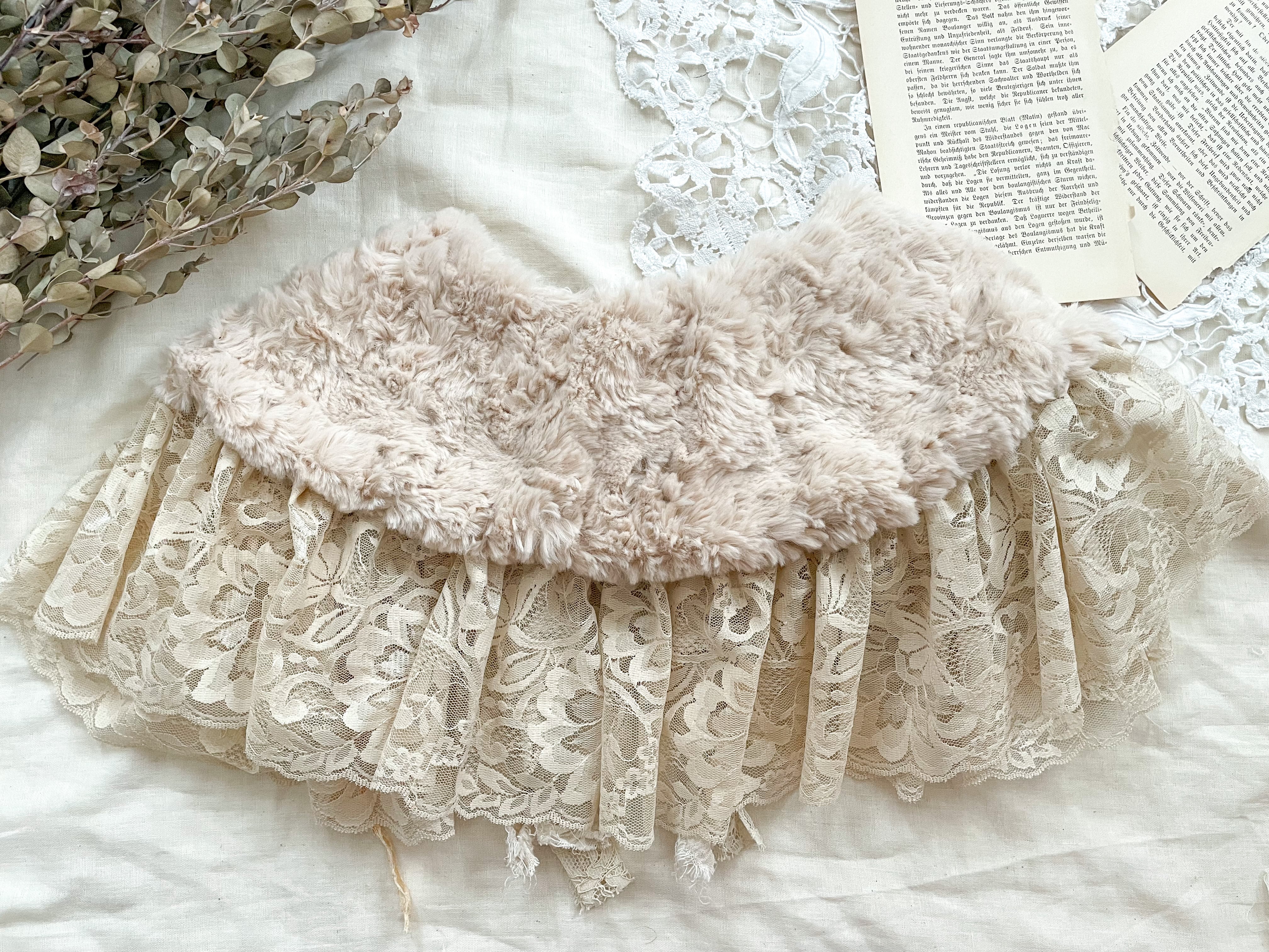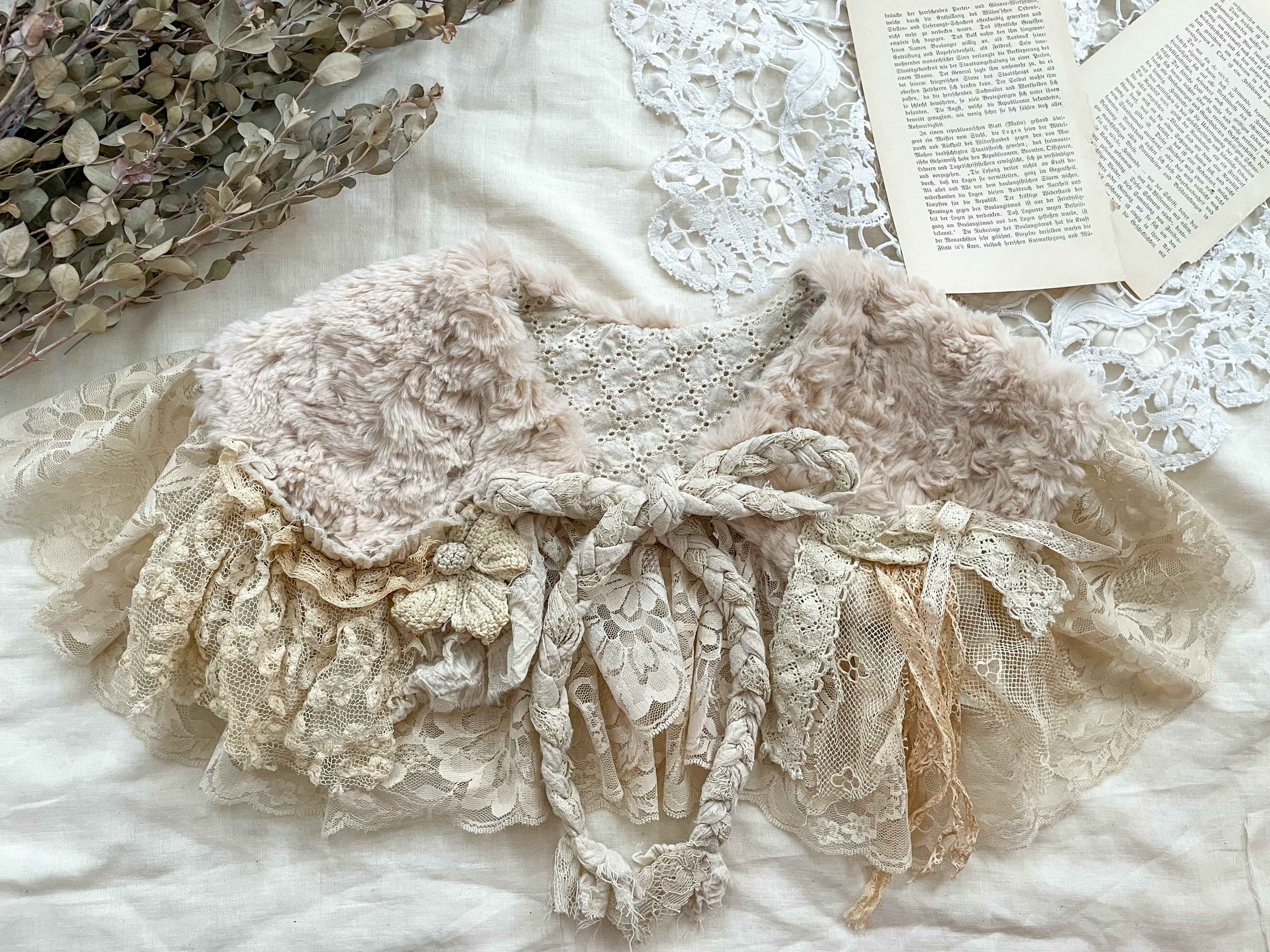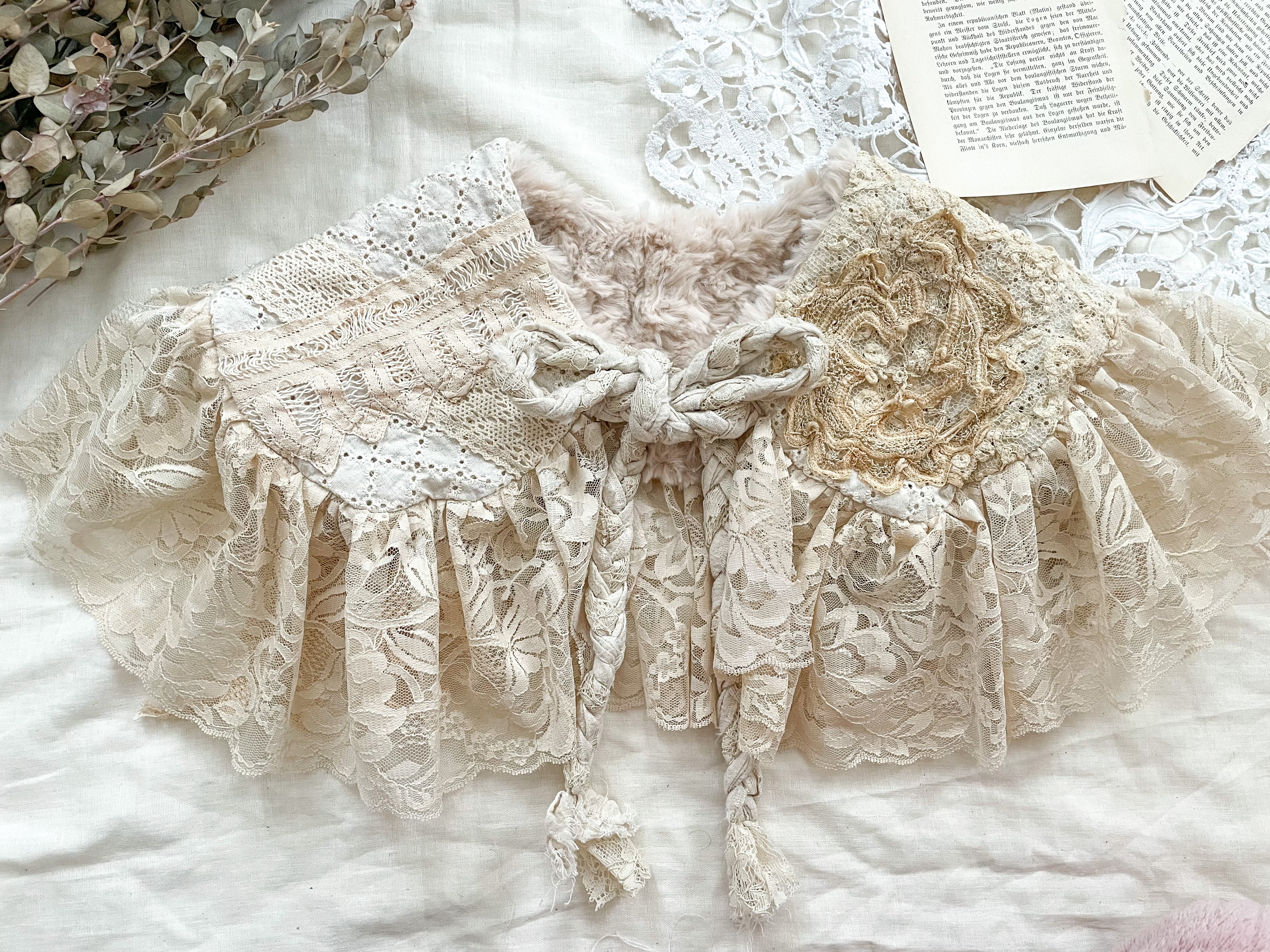アンティークレースと現行レースをmixしてコラージュした、ベージュカラーが可愛いファーティペットです。