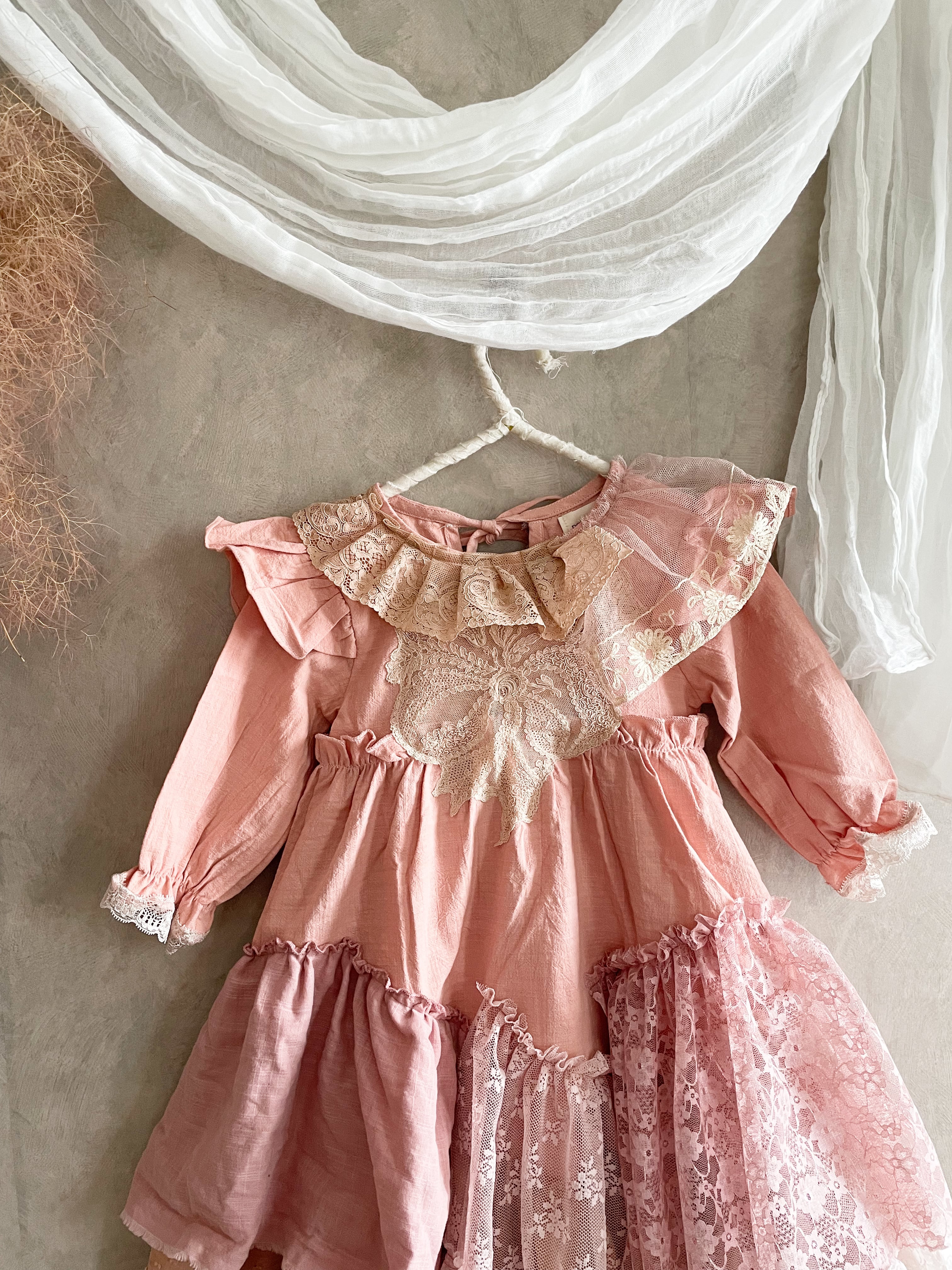 アンティークなくすみピンクがかわいい桜ワンピースです。