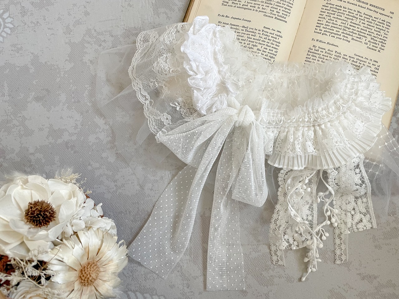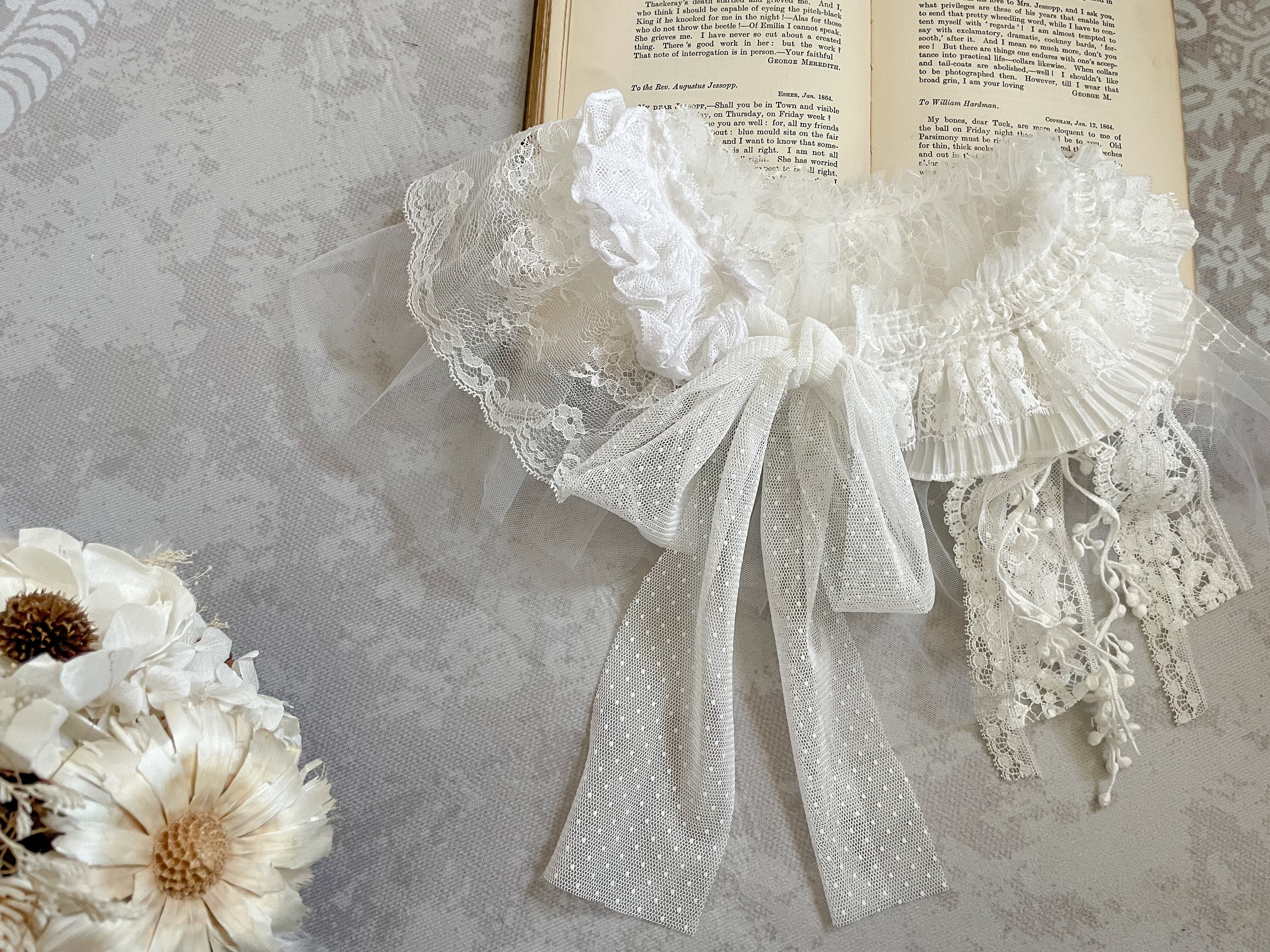 チュールやふわふわのレースをコラージュして作った軽やかな付襟です。