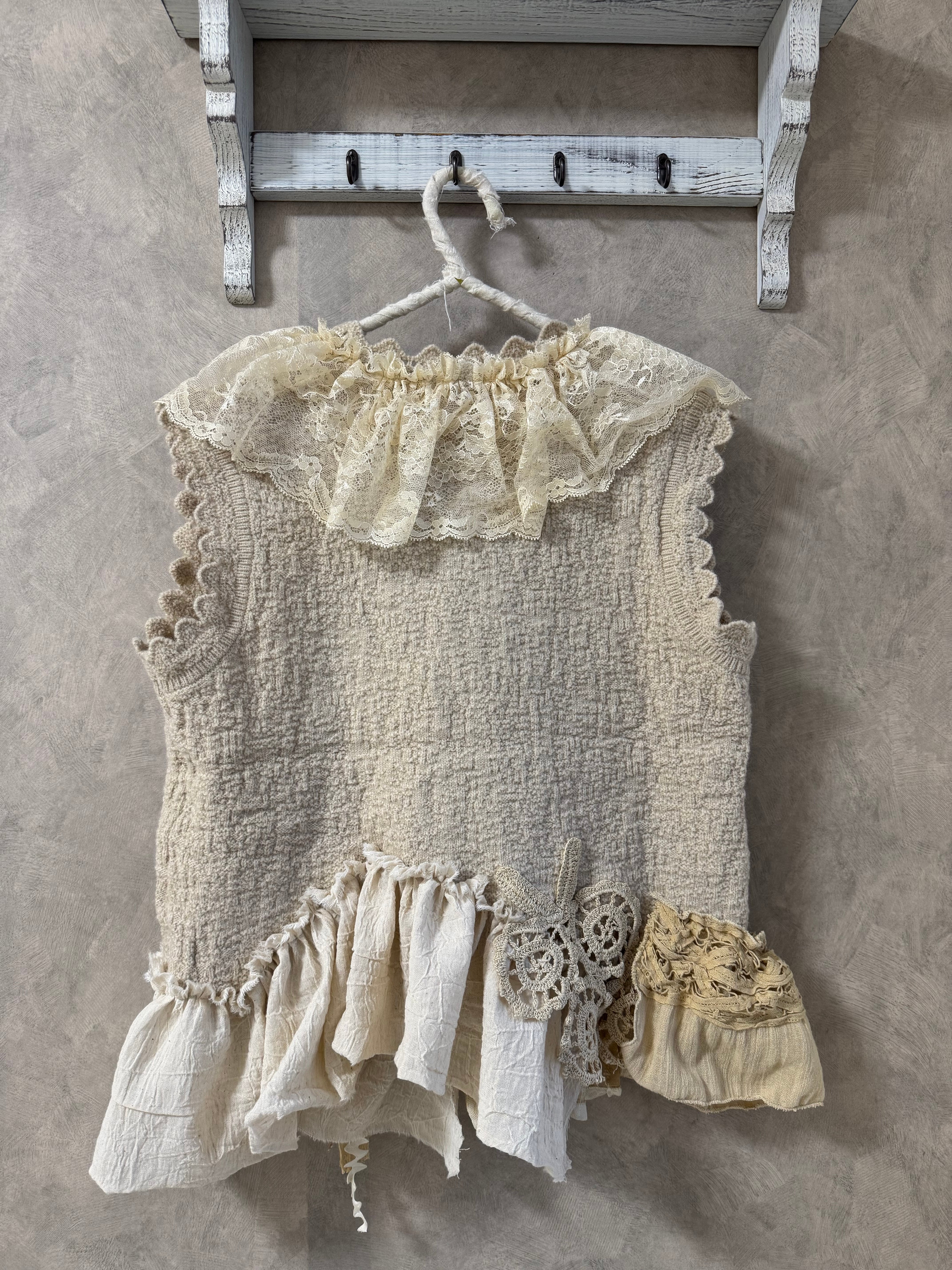 アンティークレースも使い、一点だけのオリジナルリメイク服です❤️