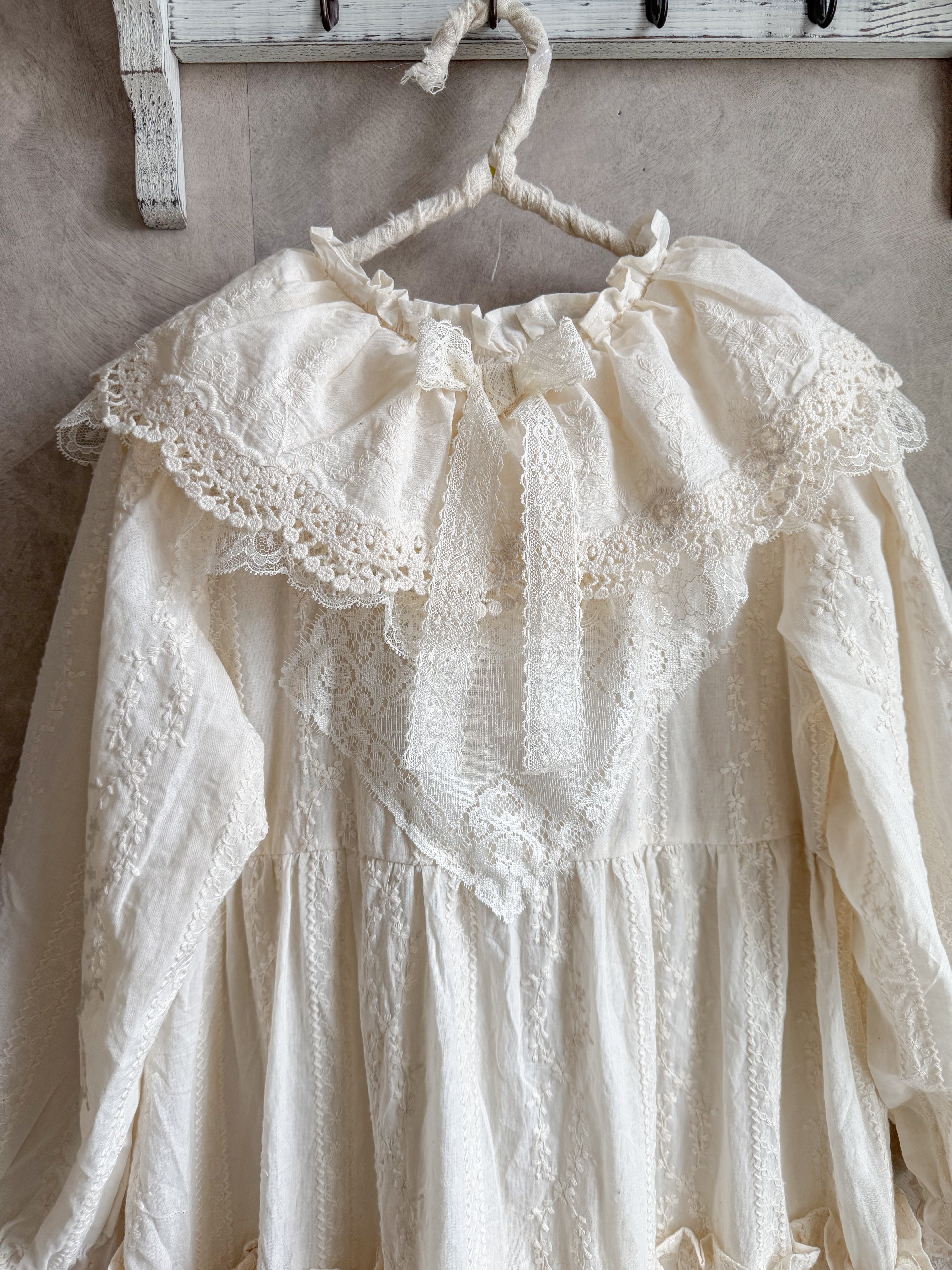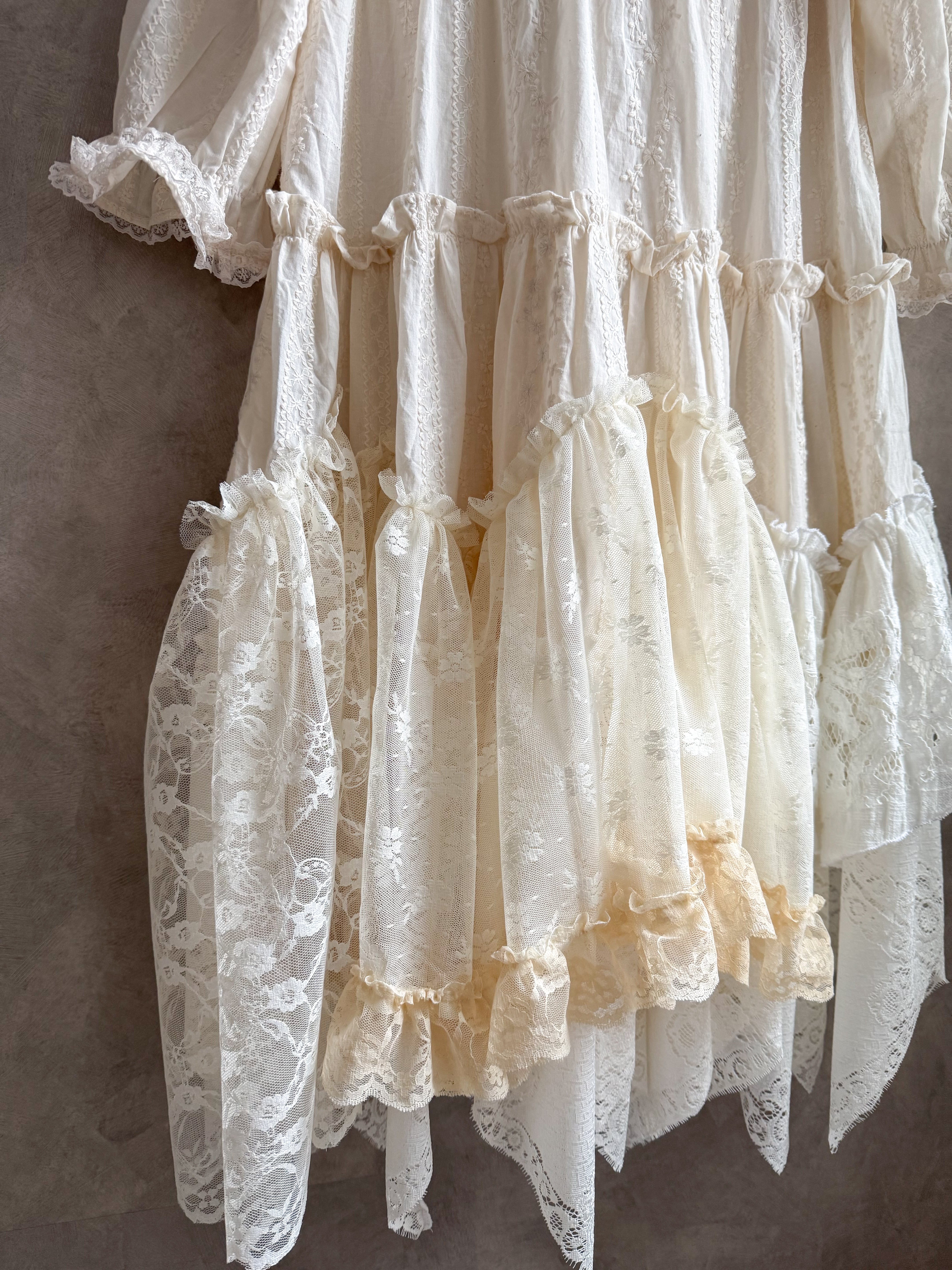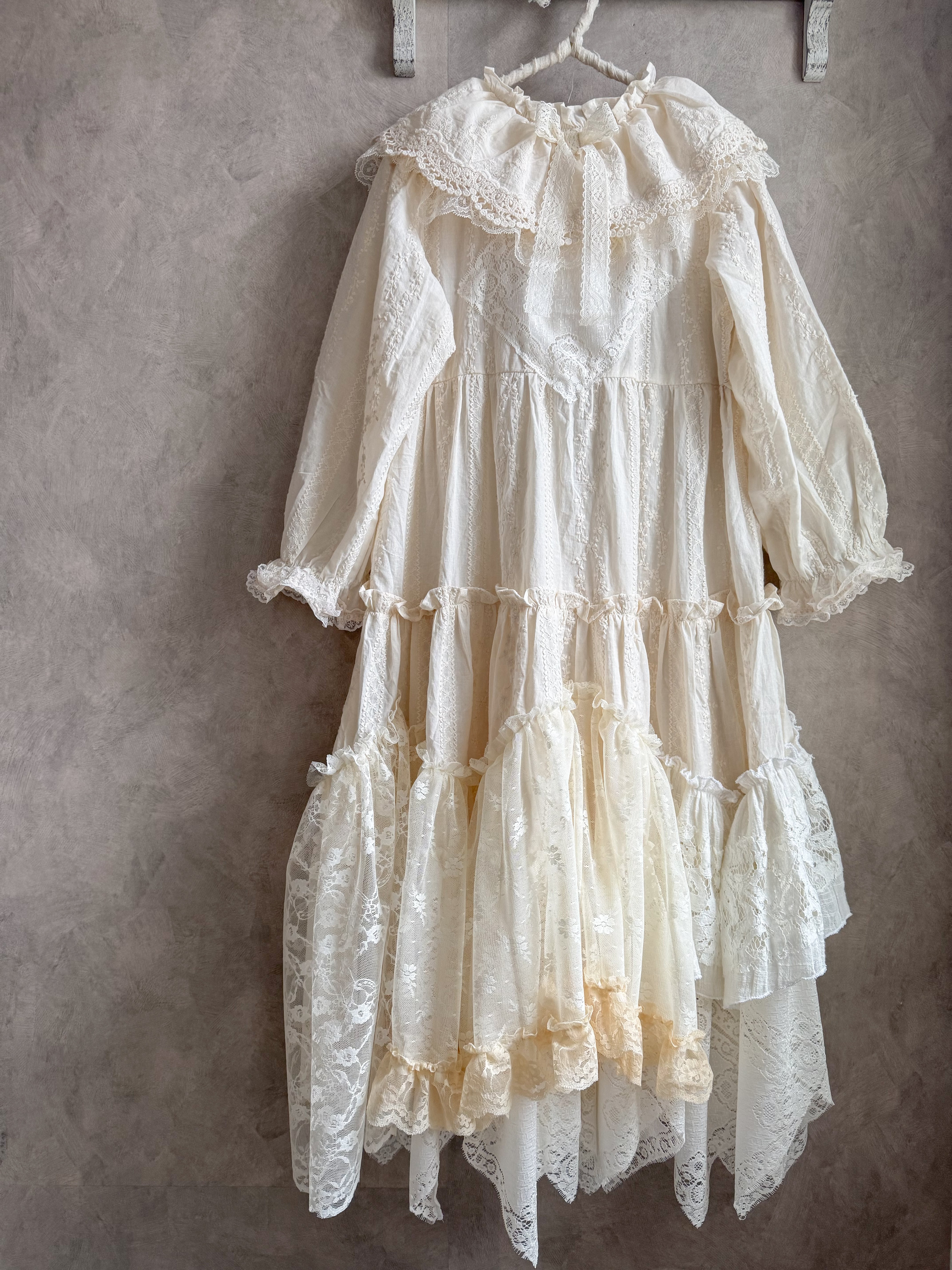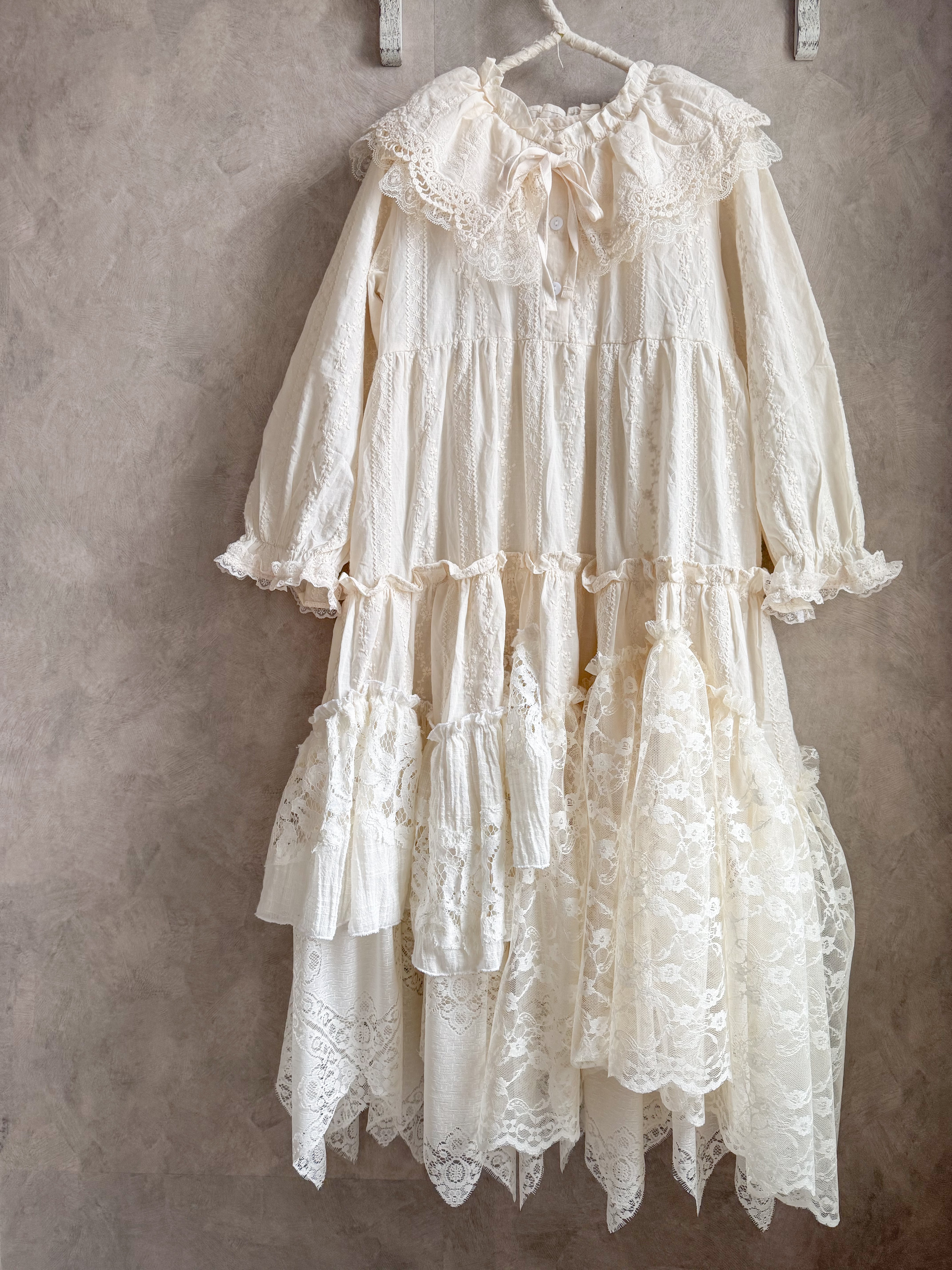 たくさんのレースを組み合わせた当店人気のオリジナルリメイクワンピースです✨